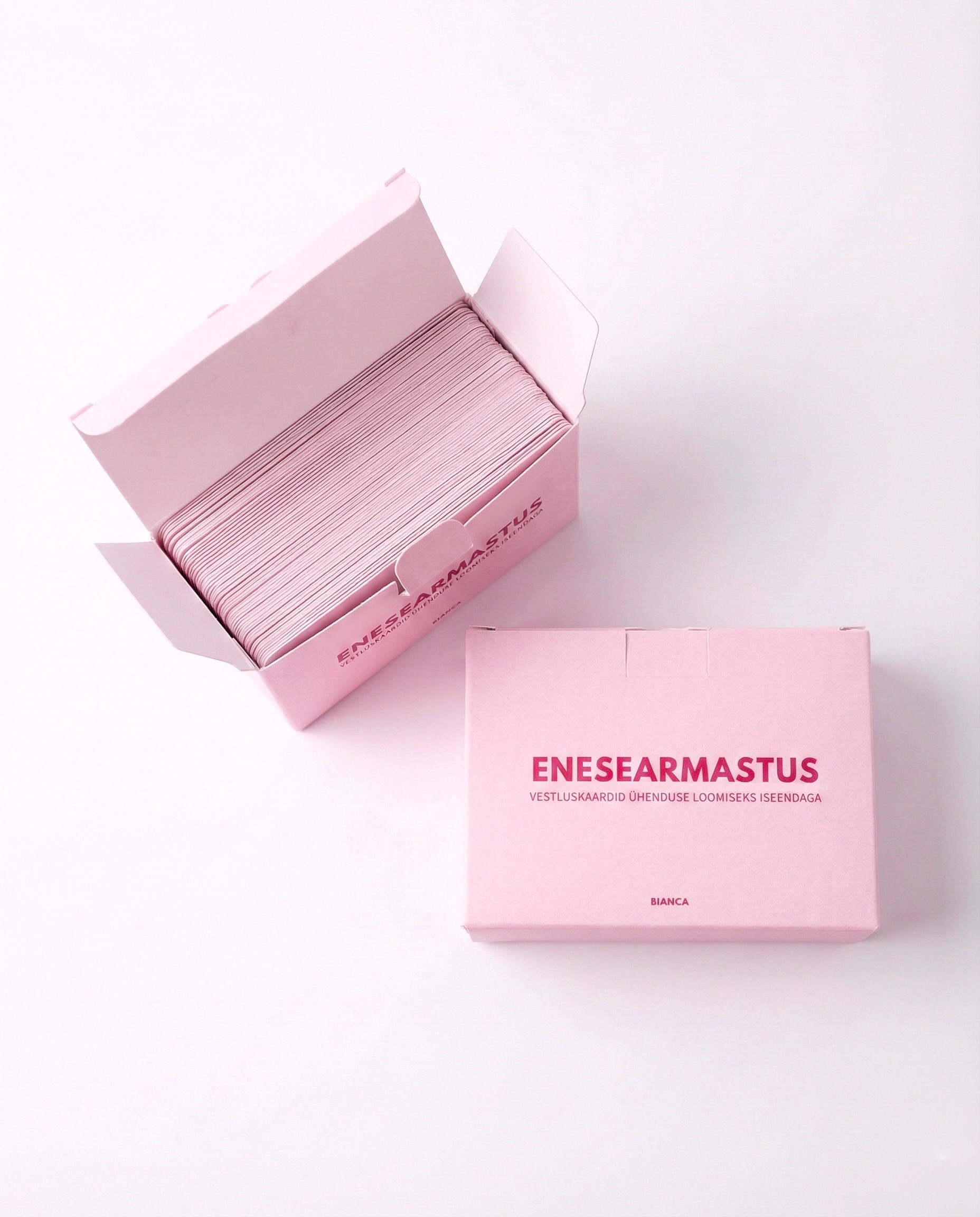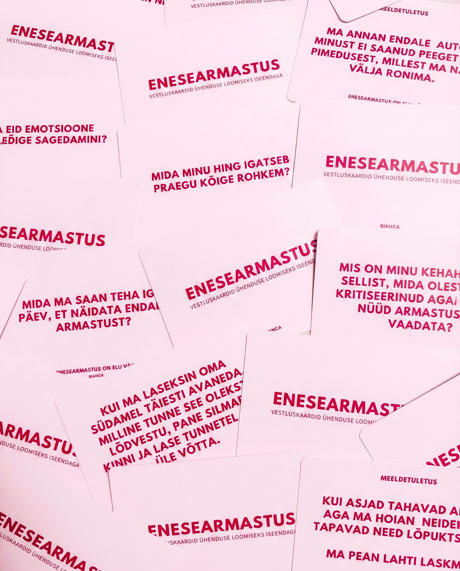 BIANCA vestluskaardid on loodud selleks, et aidata sul luua tugevam ühendus iseendaga, mõista oma tundeid ja süüvida enesearmastuse, teadlikkuse ning suhete teemadesse.