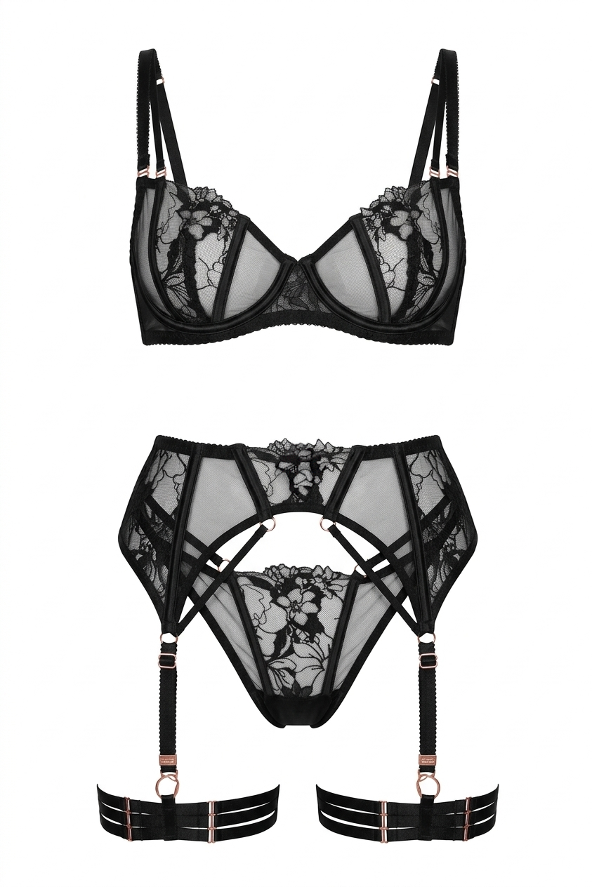 Naiseliku disainiga must pesukomplekt