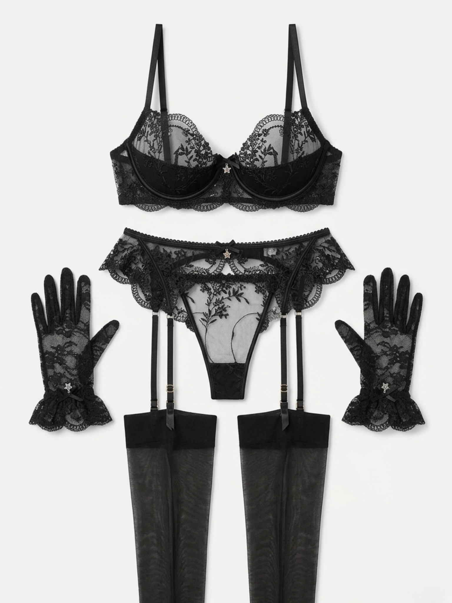 Must pitsiline pesukomplekt sukkade ja kinnastega