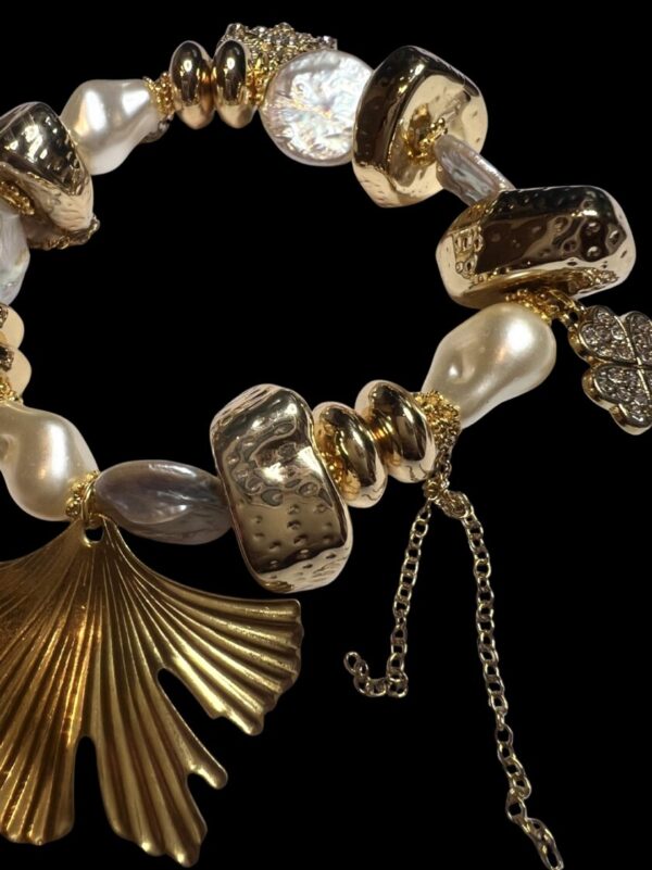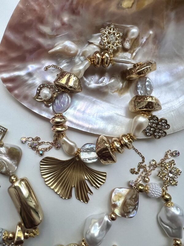Nautige käsitsi valmistatud disaini ilu selle ainulaadse käevõruga, mis on valmistatud hoolikalt valitud kividest. Kõrge kvaliteediga kunstpärlite kõrval leiate ka looduslikke pärleid, mis on loetletud allpool.
