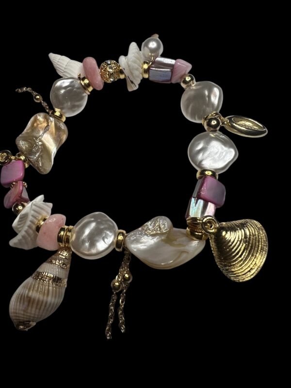 Naudi käsitöö ilu selle kauni, erinevatest kivikestest kokkupandud käevõruga. Iga detail on hoolikalt valitud, et luua stiilne kooslus – lisaks kvaliteetsetele kunstpärlitele on looduslikku merekarpi.