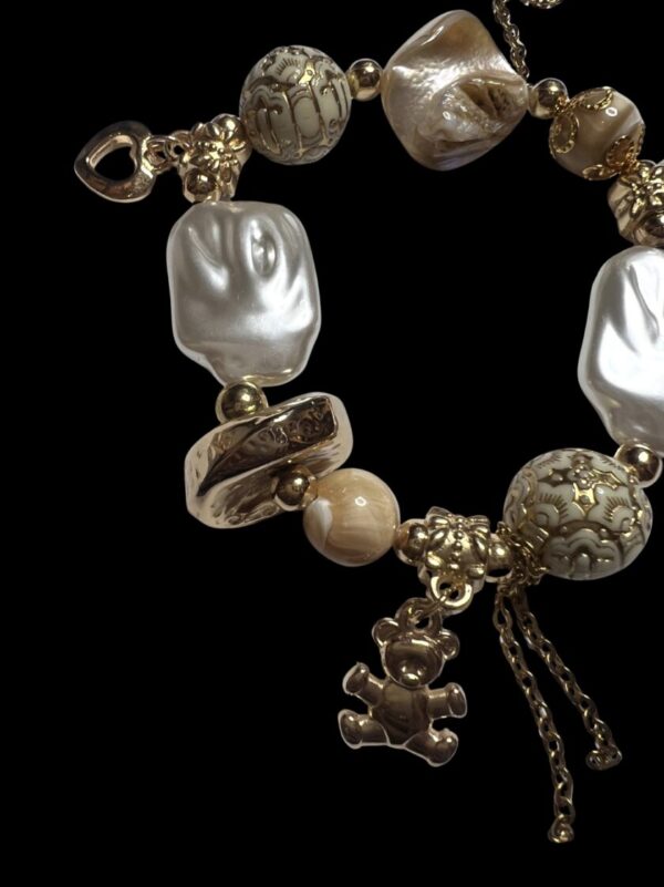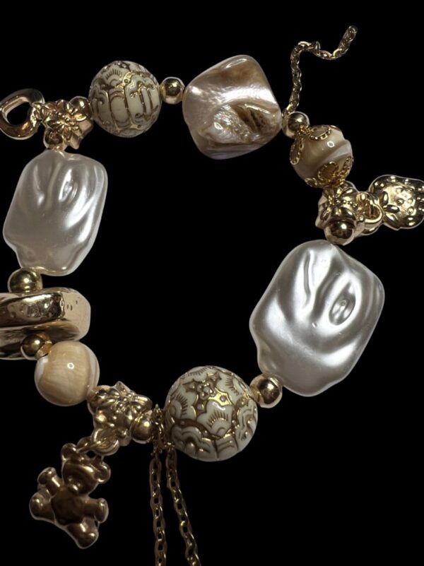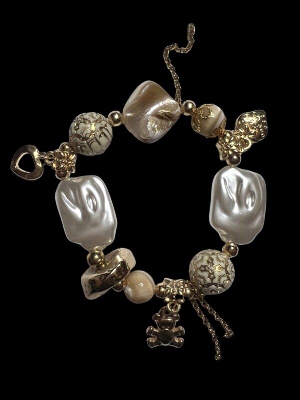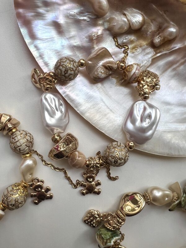 Nautige käsitsi valmistatud disaini ilu selle ainulaadse käevõruga, mis on valmistatud hoolikalt valitud kividest. Kõrge kvaliteediga kunstpärlite kõrval leiate ka looduslikke pärleid, mis on loetletud allpool.