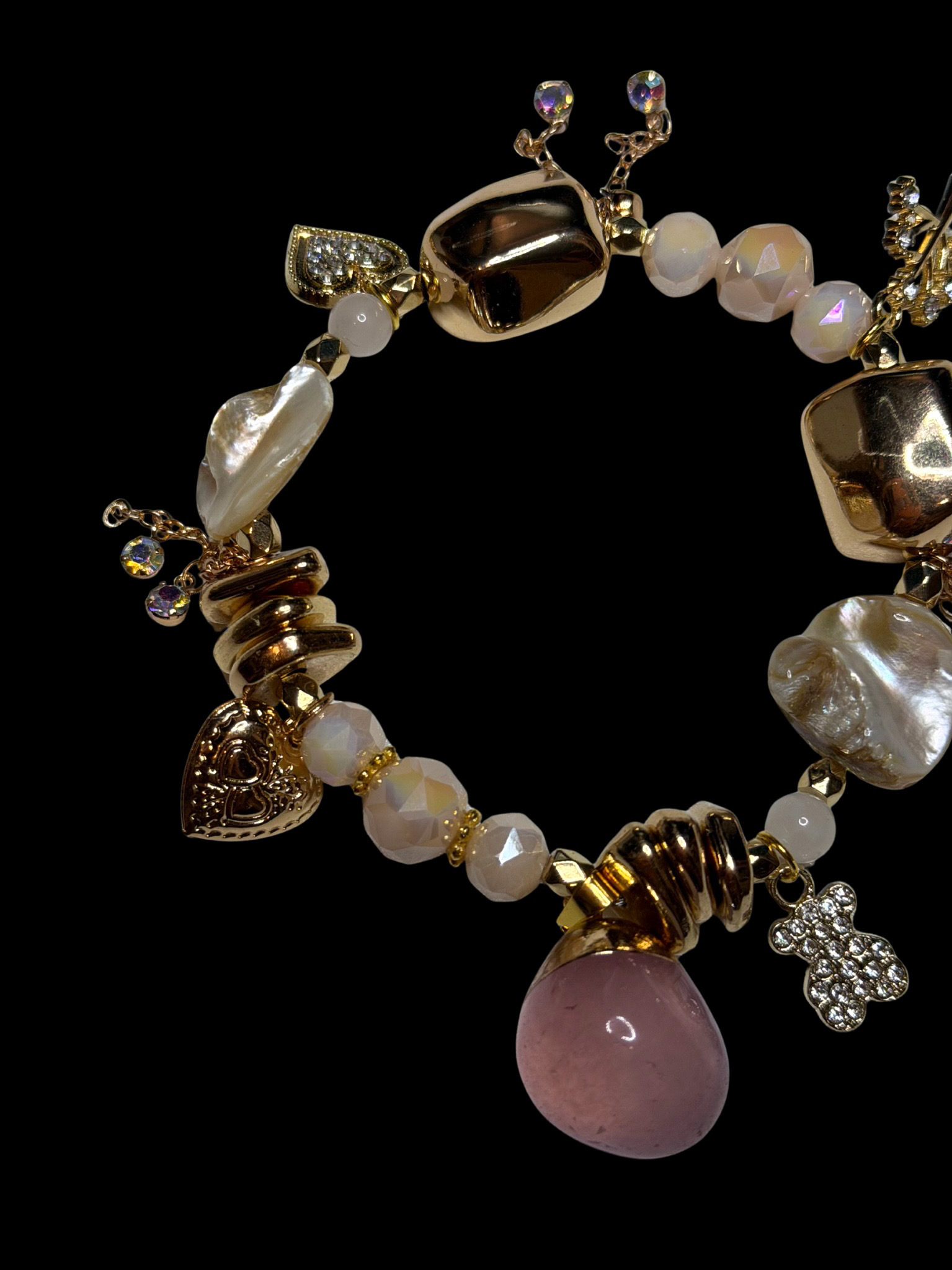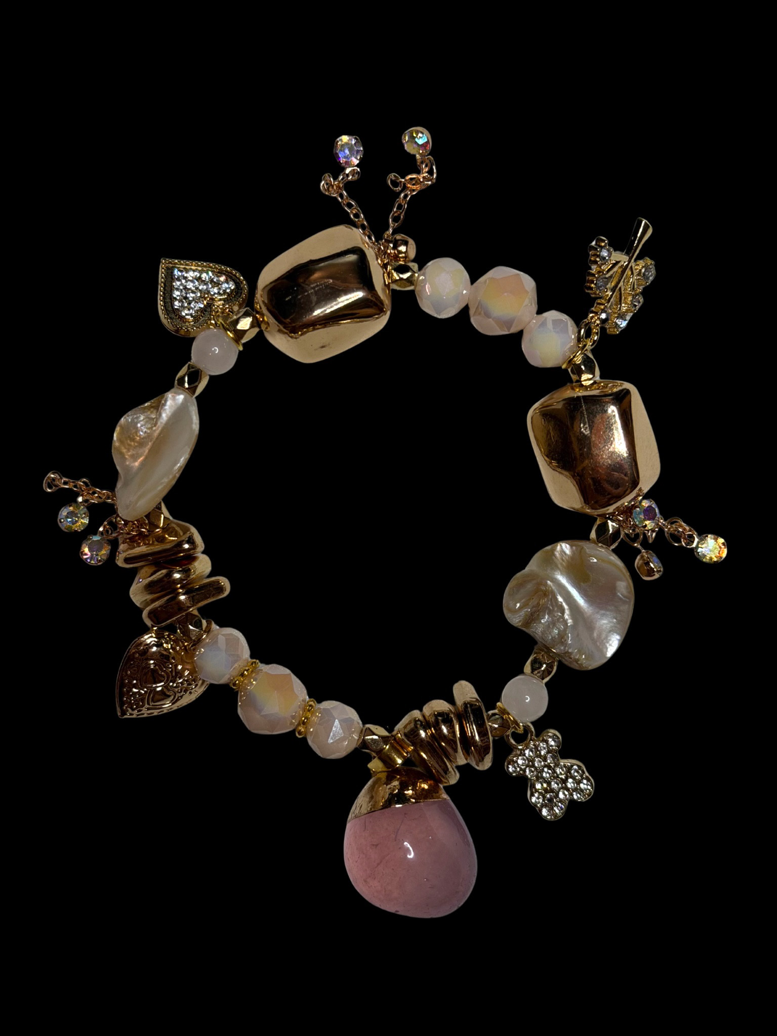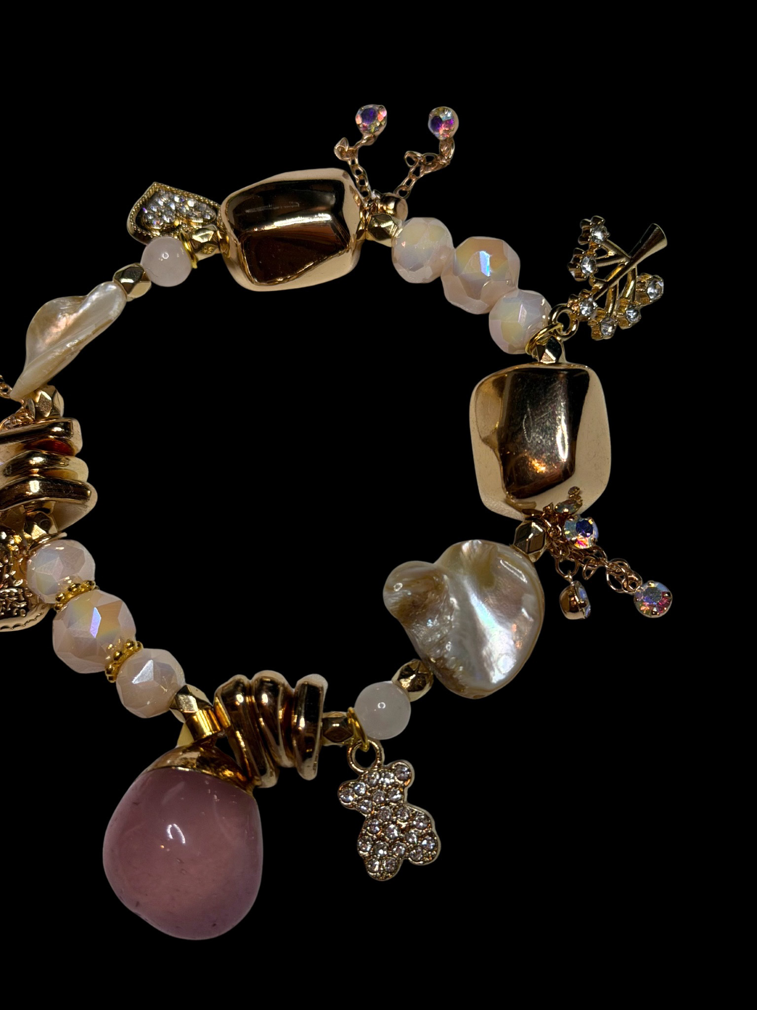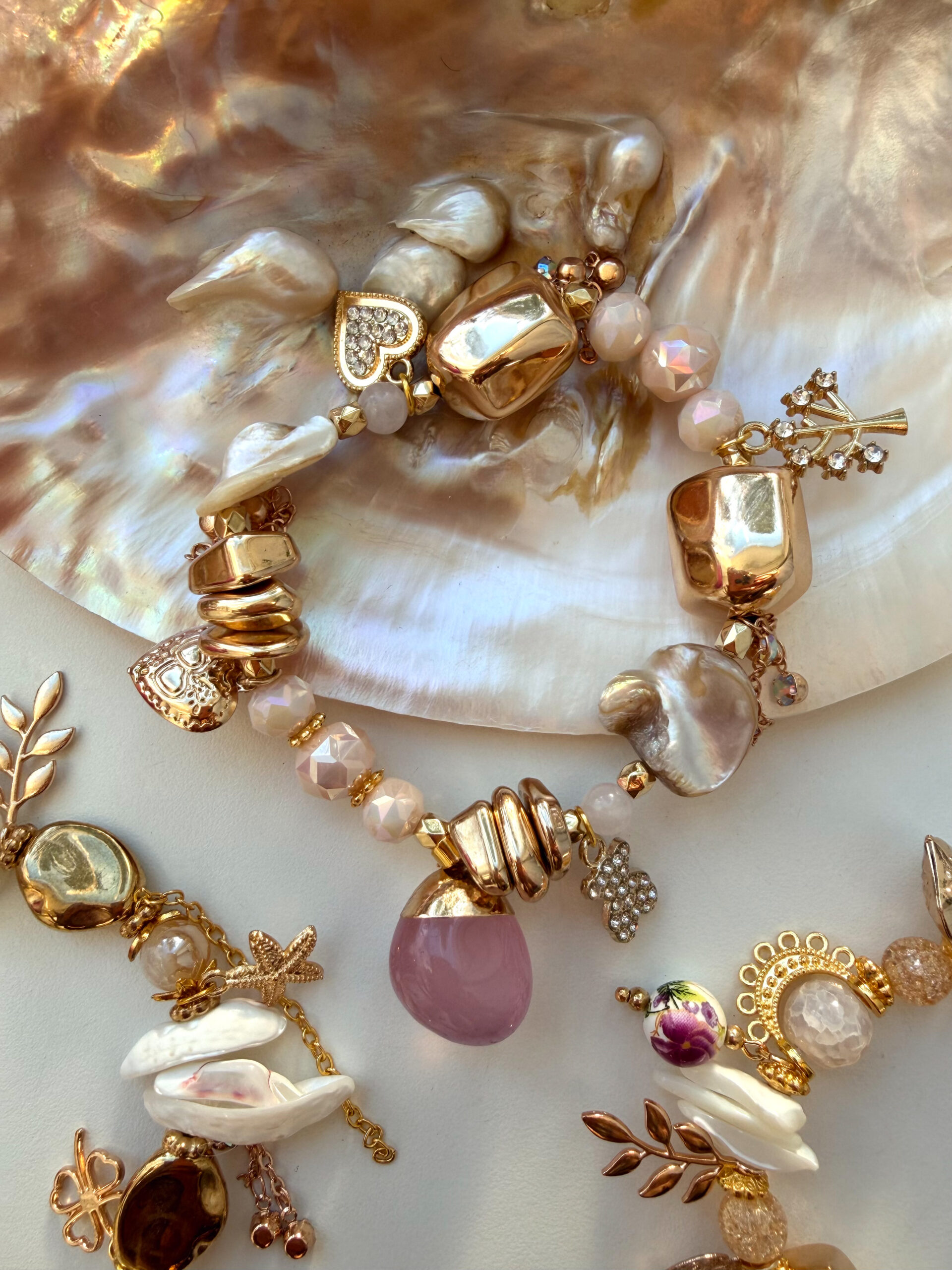Nautige käsitsi valmistatud disaini ilu selle ainulaadse käevõruga, mis on valmistatud hoolikalt valitud kividest. Kõrge kvaliteediga kunstpärlite kõrval leiate ka looduslikke pärleid, mis on loetletud allpool.
