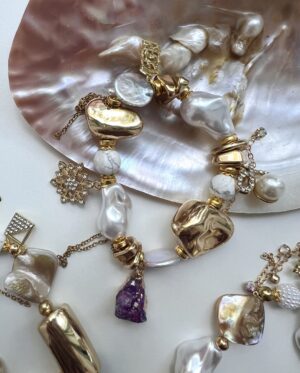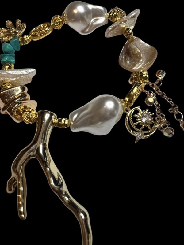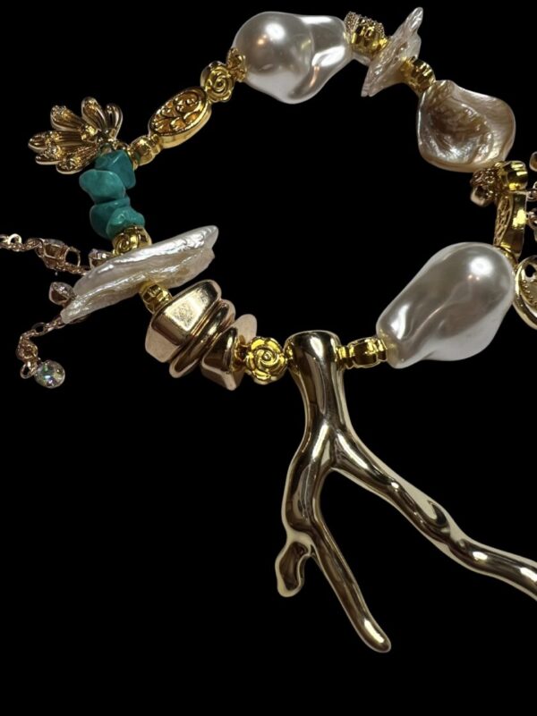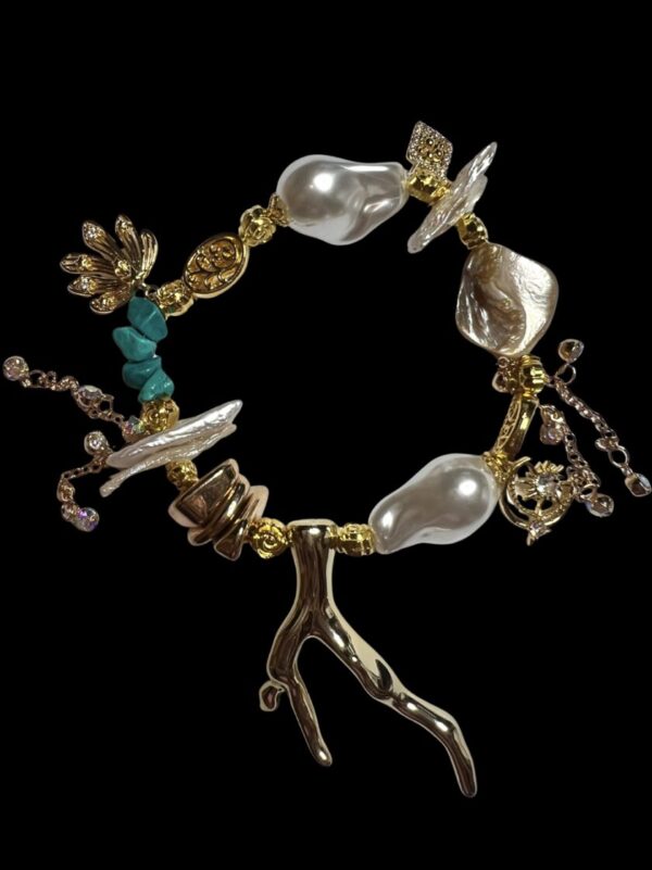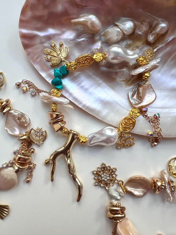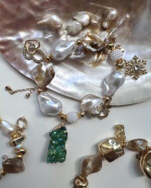 Nautige käsitsi valmistatud disaini ilu selle ainulaadse käevõruga, mis on valmistatud hoolikalt valitud kividest. Kõrge kvaliteediga kunstpärlite kõrval leiate ka looduslikke pärleid, mis on loetletud allpool.
