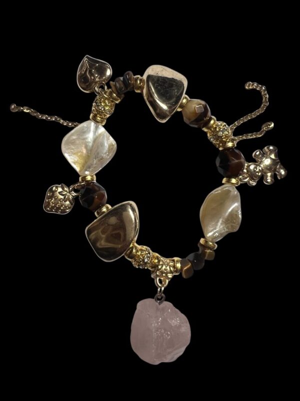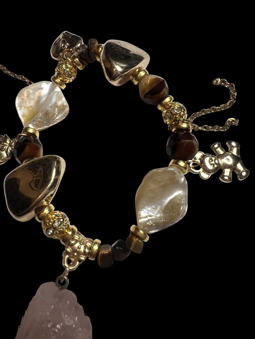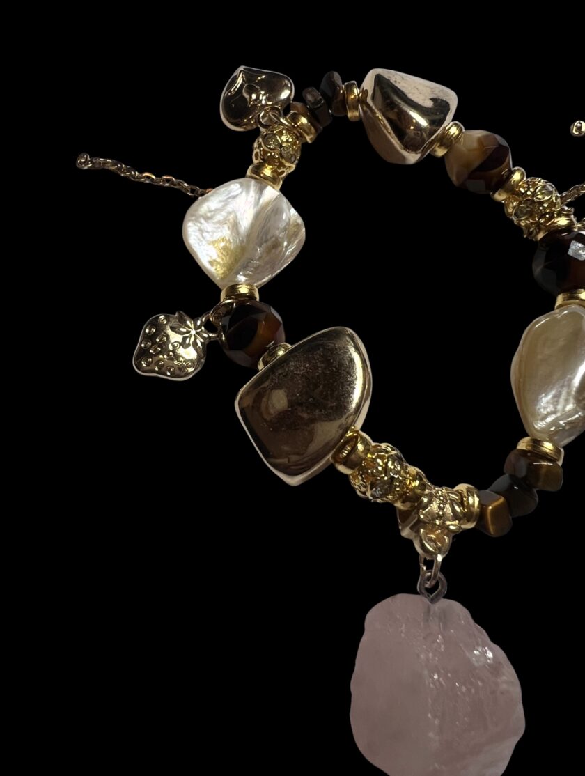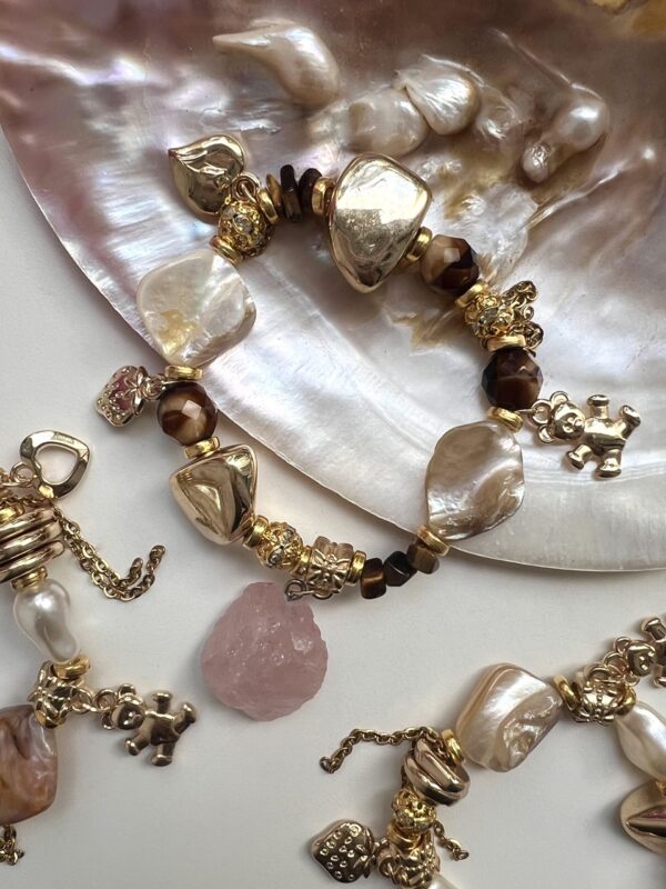 Nautige käsitsi valmistatud disaini ilu selle ainulaadse käevõruga, mis on valmistatud hoolikalt valitud kividest. Kõrge kvaliteediga kunstpärlite kõrval leiate ka looduslikke pärleid, mis on loetletud allpool.