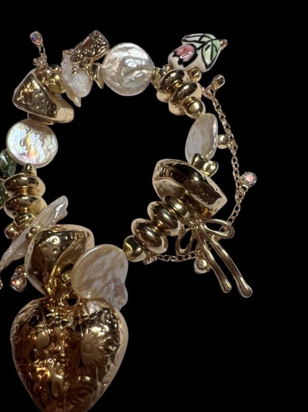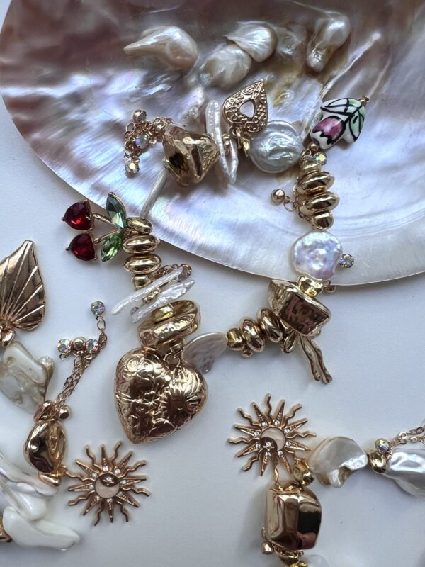 Nautige käsitsi valmistatud disaini ilu selle ainulaadse käevõruga, mis on valmistatud hoolikalt valitud kividest. Kõrge kvaliteediga kunstpärlite kõrval leiate ka looduslikke pärleid, mis on loetletud allpool.