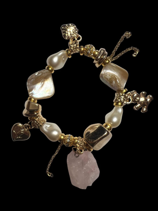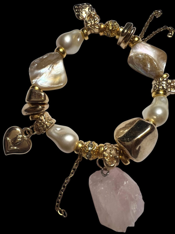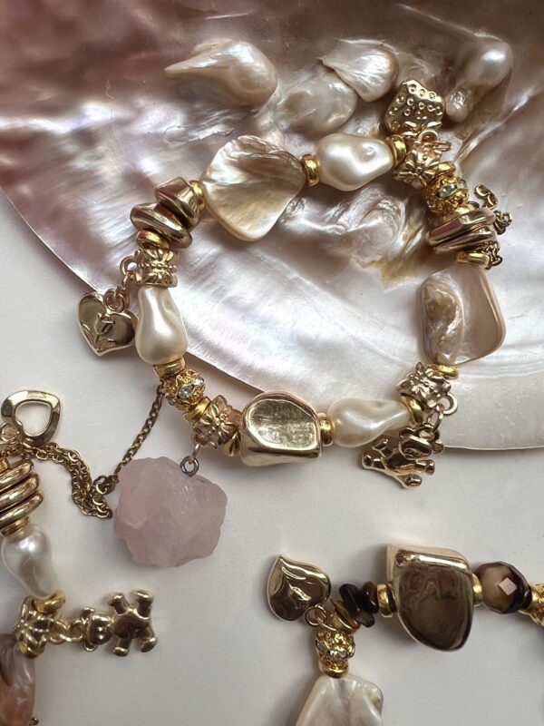 Nautige käsitsi valmistatud disaini ilu selle ainulaadse käevõruga, mis on valmistatud hoolikalt valitud kividest. Kõrge kvaliteediga kunstpärlite kõrval leiate ka looduslikke pärleid, mis on loetletud allpool.