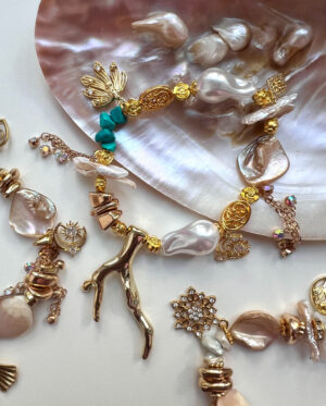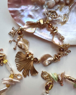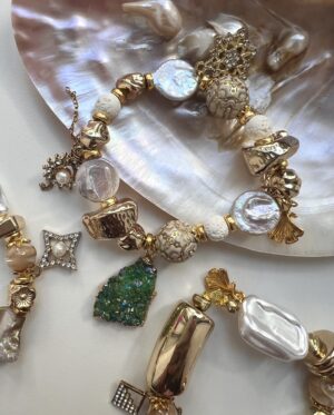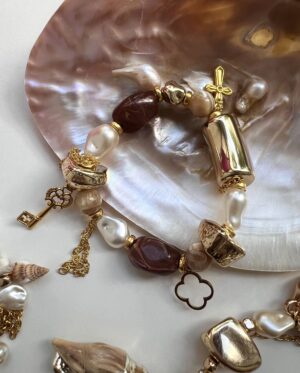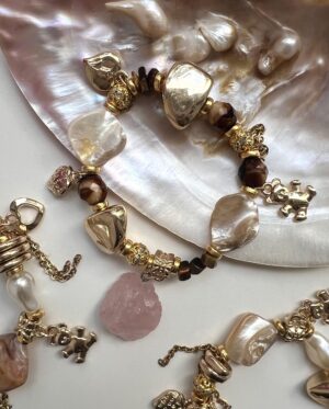 Naudi käsitöö ilu selle kauni, erinevatest kivikestest kokkupandud käevõruga. Iga detail on hoolikalt valitud, et luua stiilne kooslus – lisaks kvaliteetsetele kunstpärlitele on laavakivi ja looduslikku merekarpi.