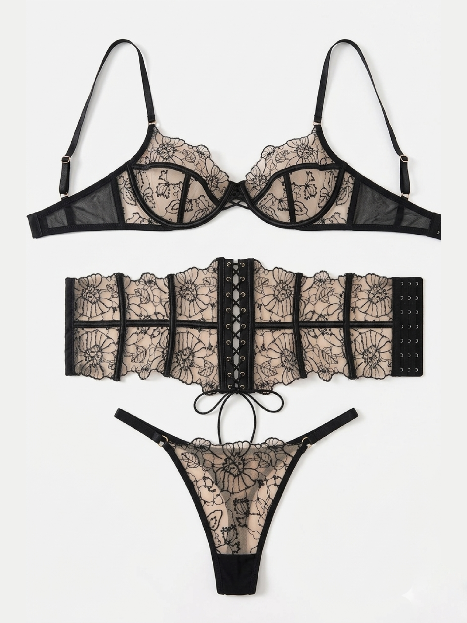 Kaunis must 3-osaline pesukomplekt